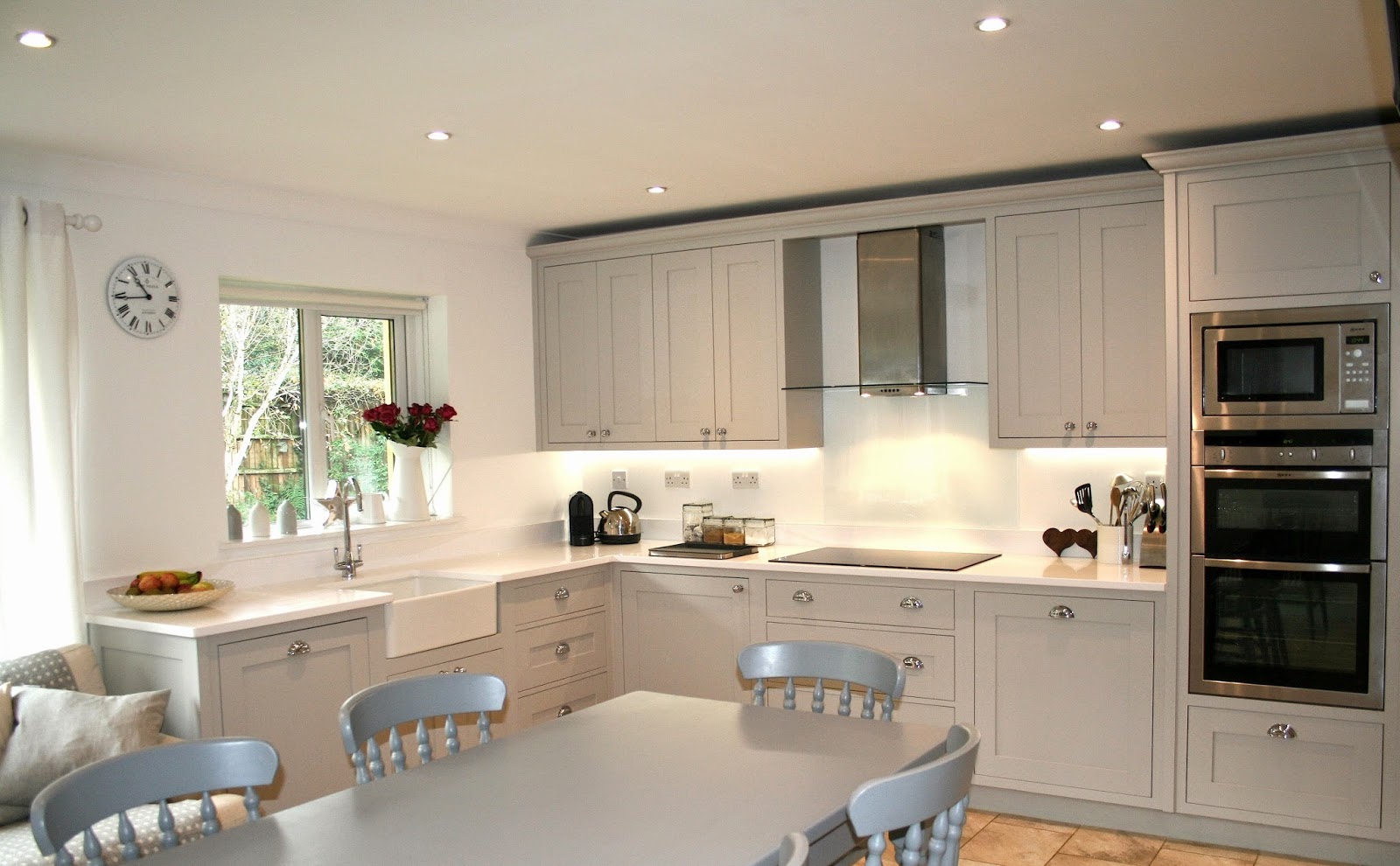 The shaker design is a classic look which clients come back to time and time again - it can be adapted in so many different ways to suit all sorts of tastes and styles. This is a contemporary version - very clean simple lines with nice chunky framing. The in frame cabinetry is